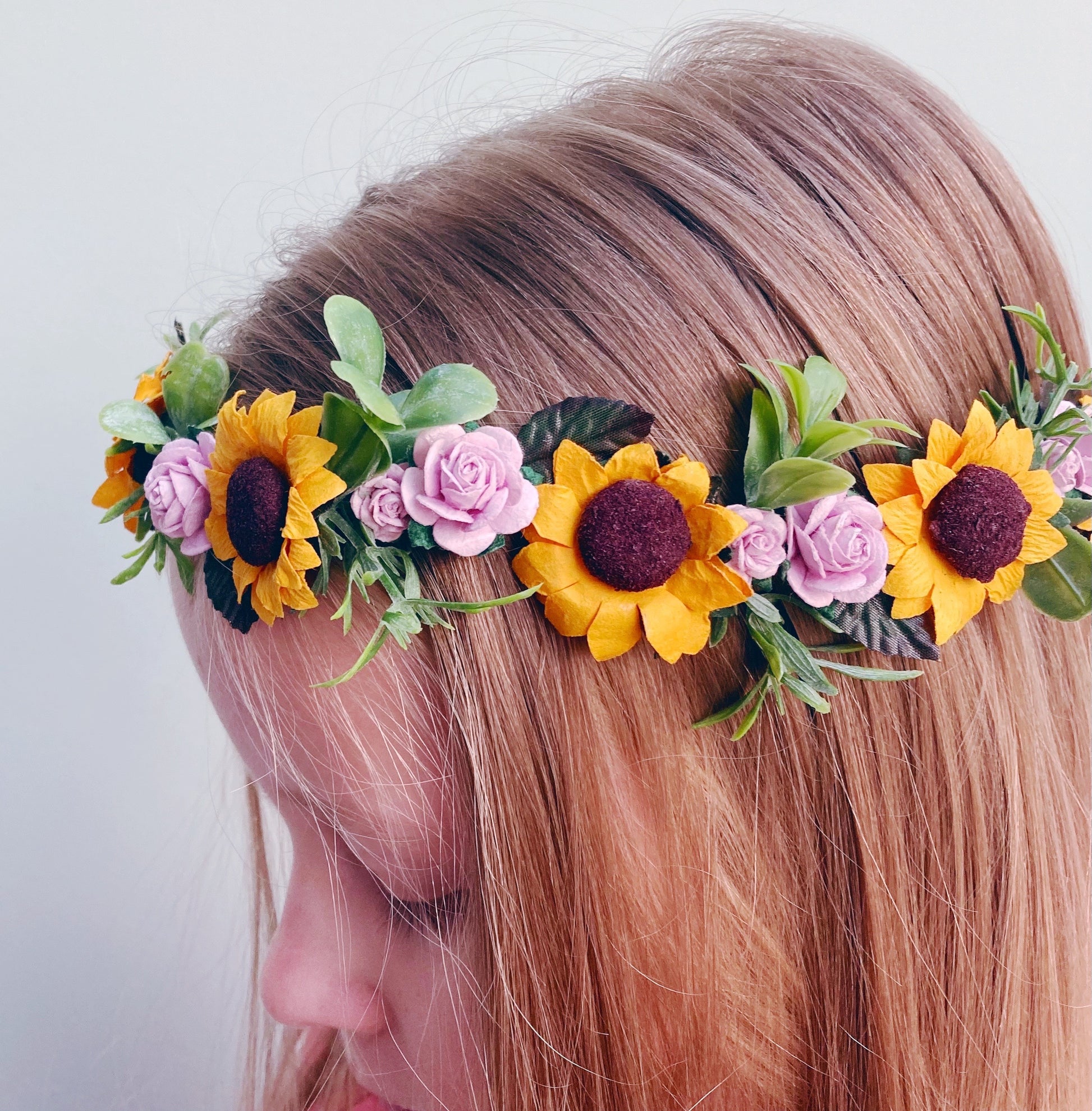 A beautiful sunflower crown, perfect for your bridesmaids or flower girls on your special day. Equally as perfect for a bride if they are wanting something dainty.