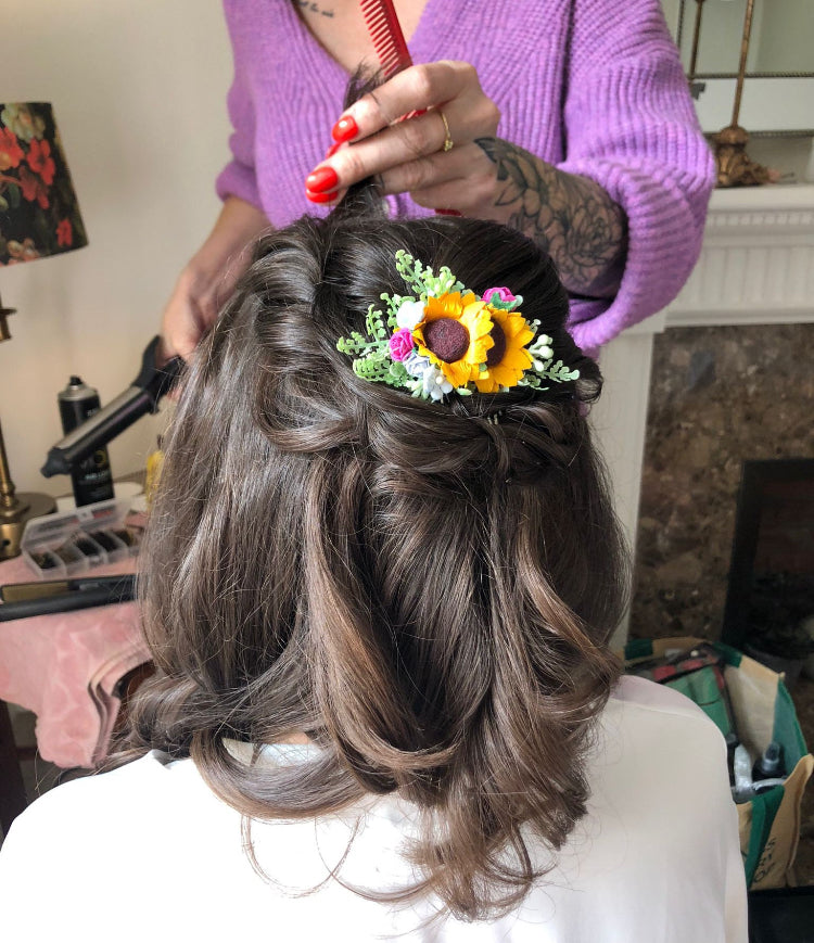 This stunning sunflower flower hair comb is the perfect finishing touch for any bride, bridesmaids or flower girls wedding hair.