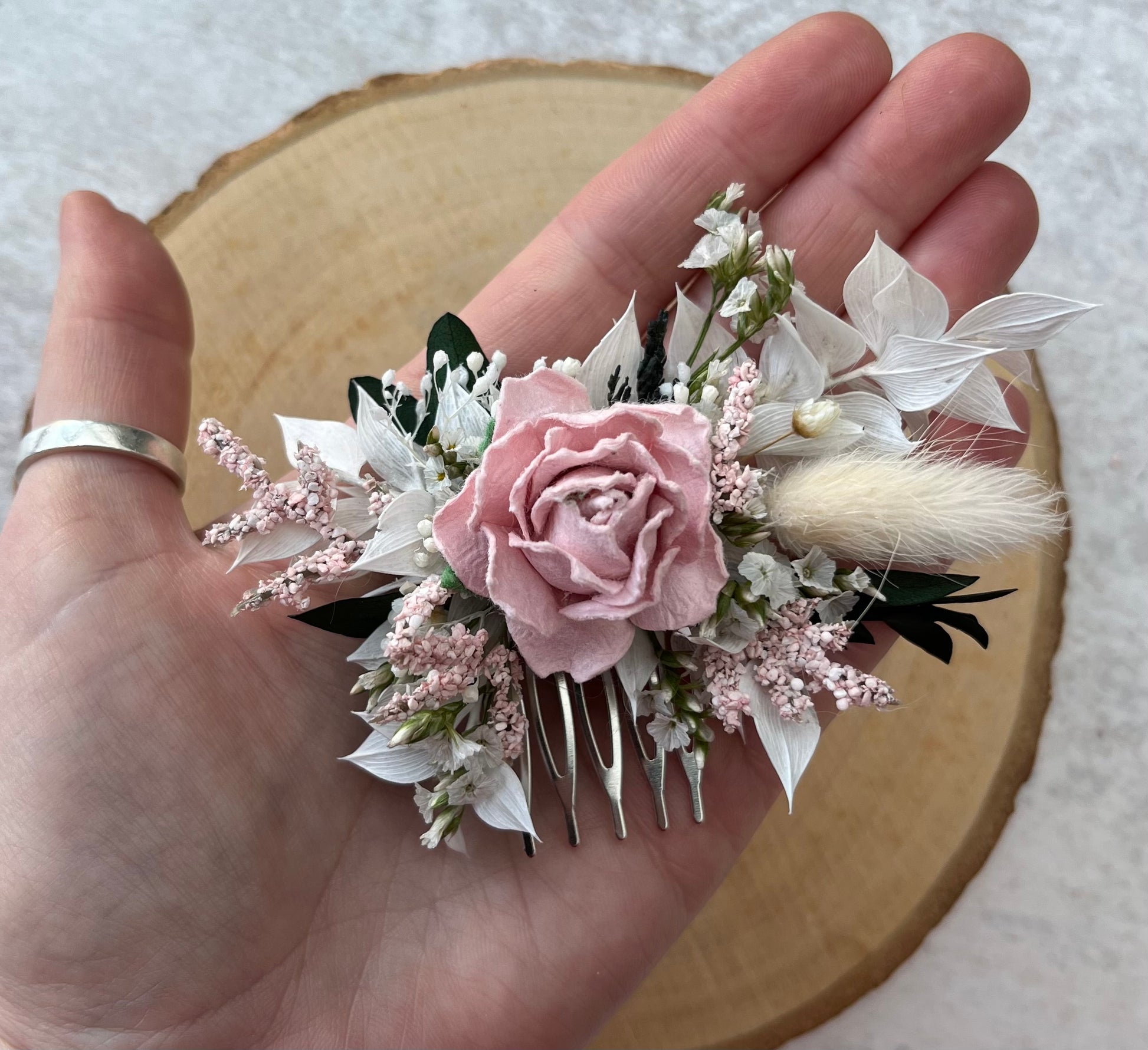Baby Pale Pink Dried Flower Hair Comb